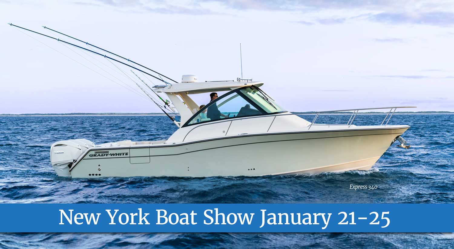 We invite you to join us at the New York Boat Show to see the new Express 340 and 9 other 2026 Grady-White models. It’s a great time to get your new Grady-White. Chart Your Course Sales Event pricing and Yamaha Extended Service plans are going on now. Some exclusions apply.